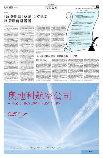 本报记者 王毕强 北京报道 在搁置一年之后《反垄断法》草案的二审稿终于于上周摆在了全国人大委员的案头