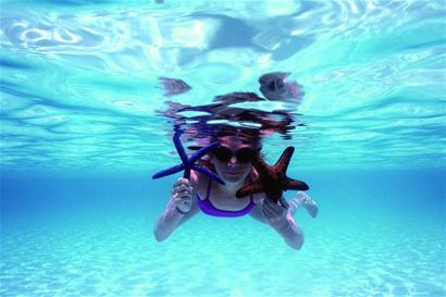 为了保存小岛的原始风貌,当地人没有兴建码头,游客只能在离岸还有三四十米的浅水中,脱了鞋子,卷起裤脚,背起行李,学当地船夫那样跳进水里,走上岸去。这样的登陆方式,可谓别具一格。