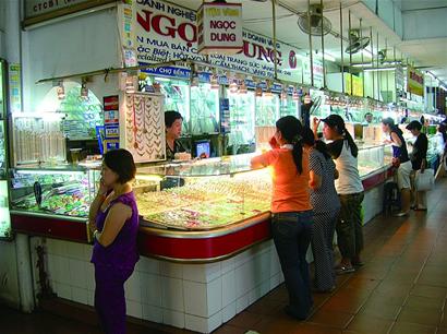位于河内HaTrung街的那几家金银店,生意总是很红火。这并非因为里面出售的金银首饰多么诱人,关键在于人们可以在这里以高于官方牌价的价格将手里的美元出手,甚至还可以买到当前已奇货可居的美元。