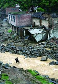 60公里外的新屯镇的情况更惨,泥石流和山体滑坡把位于山坡上的纳包村完全摧毁,房屋倒了大半,33间民房被洪水冲得不见踪影。山脚下的小学校成了全村300多村民的避难所,30多顶救灾帐篷挤满了狭小的操场。