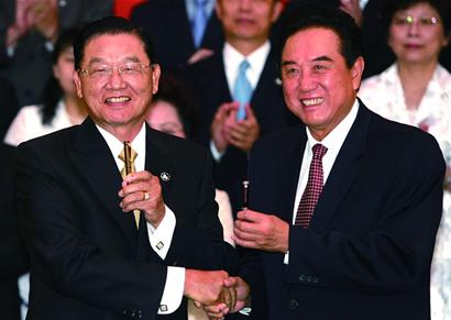 6月13日一早,陈云林和江丙坤在钓鱼台国宾馆签署协议,各有简、繁体版本,陈夫人与江夫人携手进场,海协会、海基会成员共同为这历史性时刻见证,双方互赠签字笔,为这次“陈江会”画上圆满句号。