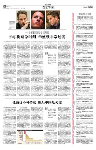 如果不是花旗银行的股票急掉到了3美元,如果不是美国人的日子越来越寒酸,布什上周本该安心享受他在白宫的最后一顿火鸡大餐,奥巴马也大可在帮女儿找好在华盛顿的新学校后,再公布他的内阁人选。