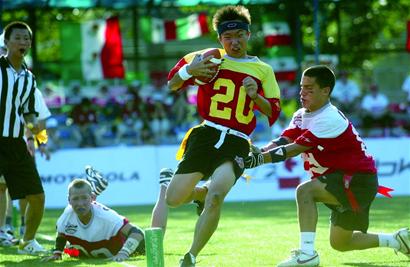 NFL也深知这一点,所以从2003年起就开始在中国推广腰旗橄榄球。腰旗橄榄球,是一种安全的“非冲撞性”的运动,目前在世界各国广为流行。