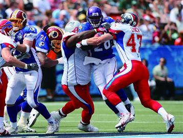 这就是NFL和NBA在开拓中国市场时所面临的不同情况。在斯特恩没有把NBA的录像带免费送给中央电视台前,篮球在中国也是一项普及的运动,在城乡各个角落随处可见篮球场。而NFL则要白手起家,直到现在,绝大部分中国人都还不知道美式橄榄球究竟有几个球员上场比赛。所以NBA稍微耕作就有收成,但是NFL,则不得不从最开始的培育种子做起。