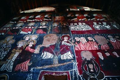 “这仅仅是一个传说,我们后人已经无法考证其真实与否。但有确切的史料记录是在公元前575年,这是从伦敦的大英博物馆里的档案发现的。当时记载着这里是牧羊人和一些神职人员呆的地方,他们长途跋涉经过这里,从水缸里取蓄存的雨水来解渴,攀谈。从10世纪以后,这里也经历了朝代的更迭和众多大大小小的战乱、灾难。直到上个世纪70年代,一个叫保罗的意大利传教士来叙利亚。他当时是来这片荒漠中冥想静修的,结果无意中发现了这个虽然被抛弃但是由于气候干旱依然保存精美的古堡。”她继续她的描述,“保罗很喜欢这个地方。正如你看到的,礼拜堂里墙上的那些古老壁画,都保存完好,有的墙上依然有3层壁画的痕迹,拥有各个时期的艺术风格。通过个人的努力,保罗从一些国际基金会那里争取到了资助,当地政府也很重视这件事情,于是开始重新开发这个地方。现在根据美国纽约当代艺术馆MOMA公布的资料和残片,这里是中世纪地中海东岸地区保存壁画最完整的宗教场所。”