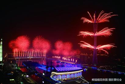 广州亚运会定于11月12日开幕,3日和6日进行了两场预演,烟花燃放吸引了数以万计的曾经抱怨亚运扰民的广州市民。尽管开幕式预演在晚上8点开始,周边数公里范围内都已实行戒严,无证无票者禁入,但在晚上6点的时候,凡是能最近距离观看到烟花表演的地方早已人满为患。很多人为了占一个好的角度,甚至爬到了交通护栏上。晚上8点,当高600米的广州新电视塔率先燃放烟花拉开亚运会大幕的时候,观看的人群中欢呼声、尖叫声、相机的闪光灯、快门声和烟花礼炮声响成一片。
