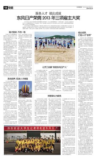 服务人才 彼此成就 东风日产荣膺2013年三项雇主大奖 2013年岁末